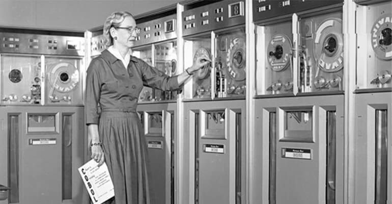 Αν και υποναύαρχος του Πολεμικού Ναυτικού των ΗΠΑ, η Grace Hopper ήταν ο εγκέφαλος πίσω από τις πρώτες αγγλικές γλώσσες προγραμματισμού. Γεννημένη στις αρχές του 1900 στη Νέα Υόρκη, υπηρέτησε στο Ναυτικό των ΗΠΑ και αργότερα δούλεψε στο Harvard Computation Lab, όπου προγραμμάτιζε τον υπολογιστή Mark 1, την πρώτη μεγάλης κλίμακας αυτόματη αριθμομηχανή και έναν πρόδρομο ηλεκτρονικών υπολογιστών. Το 1946 έγραψε το πρώτο εγχειρίδιο υπολογιστή, A Manual of Operation for the Automatic Sequence Controlled Calculator, στο οποίο περιέγραφε τον τρόπο λειτουργίας του Mark 1 και ήταν η πρώτη εκτενής επεξεργασία του τρόπου προγραμματισμού ενός υπολογιστή.