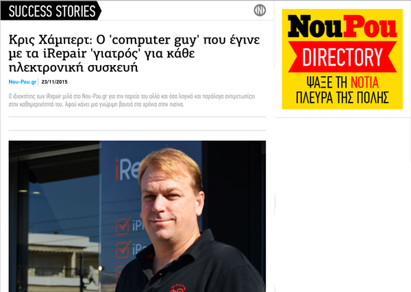 Θα μπορούσε ένας επιτυχημένος αθλητής να παρατήσει την καριέρα του στο water polo και να διεκδικήσει “μετάλλιο” στον στίβο των επιχειρήσεων κάνοντας επάγγελμα το χόμπι του; Η περίπτωση του Chris Humbert, ιδρυτή του iRepair αποδεικνύει ότι όλα μπορούν να γίνουν, αρκεί να είσαι διατεθειμένος να πάρεις το ρίσκο, ακόμη και όταν πρόκειται για δραστηριοποίηση στην ελληνική αγορά.