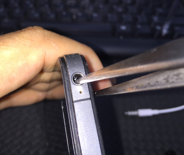 3. Εάν αντιλαμβάνεστε ότι στο εσωτερικό μπορεί να έχουν κολλήσει επιπλέον ακαθαρσίες δοκιμάστε να τις αφαιρέσετε προσέχοντας να μην προκαλέσετε βλάβη στο κάτω μέρος του audio jack, χρησιμοποιώντας ένα λεπτό, αιχμηρό αντικείμενο Πχ. τσιμπιδάκι, συνδετήρας