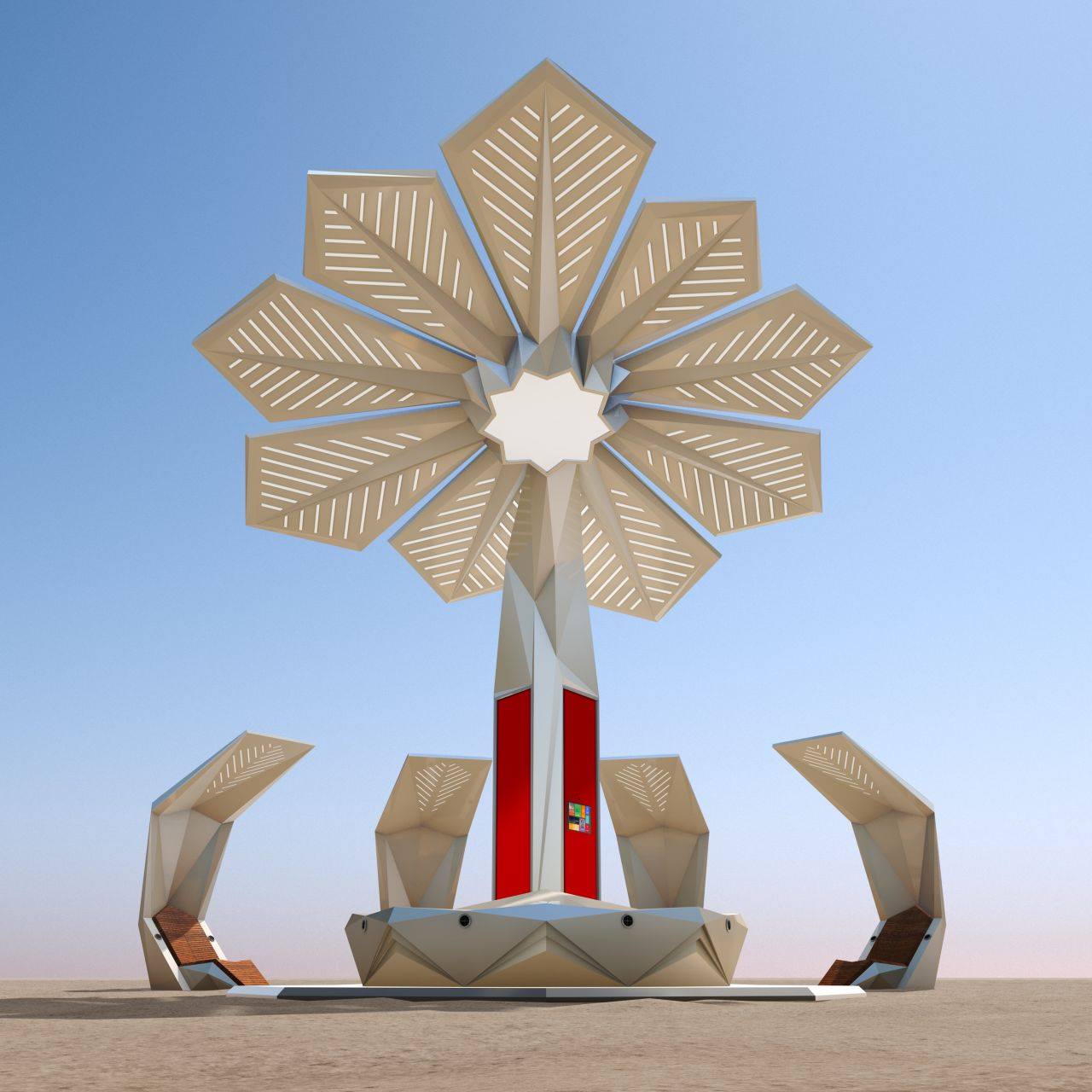 Αυτό το εγχείρημα ζητήθηκε, σχεδιάστηκε και υλοποιήθηκε για να ταιριάζει απόλυτα με την φιλοσοφία της πόλης και προσφέρει σκιά και πληροφορίες σε κατοίκους και επισκέπτες με ένα εντυπωσιακό και high-tech τρόπο.