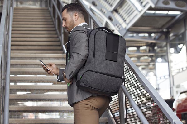 Ένα «έξυπνο» σακίδιο που χρησιμοποιεί την ευφυΐα του για να φορτίσει και να προστατέψει τις συσκευές σας όσο βρίσκεστε στον δρόμο, διαθέτει ένα προηγμένο φορητό σύστημα φόρτισης απευθείας μέσα στο ύφασμα της πλάτης του και έξι θύρες USB.