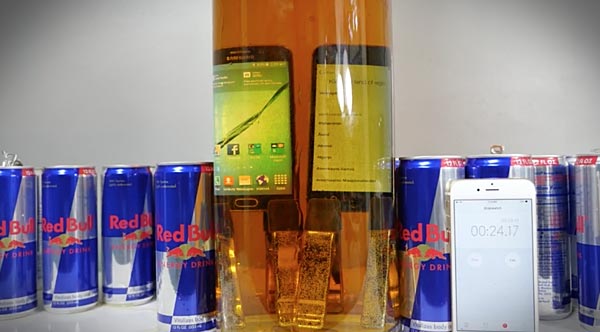 Μήπως είχατε ποτέ αναρωτηθεί τι συμβαίνει εάν βυθίσουμε δυο smartphone σε ένα βαθύ δοχείο γεμάτο με το ενεργειακό ποτό Red Bull και πόση ώρα θα τους έπαιρνε μέχρι να «σβήσουν»;