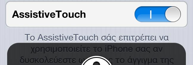 To Assistive Touch εμφανίστηκε στην iOS 5 έκδοση και είναι μια συντόμευση προσβασιμότητας που σας προσφέρει έναν επιπλέον τρόπο για να μπορέσετε να αλληλεπιδράσετε με την συσκευή σας.